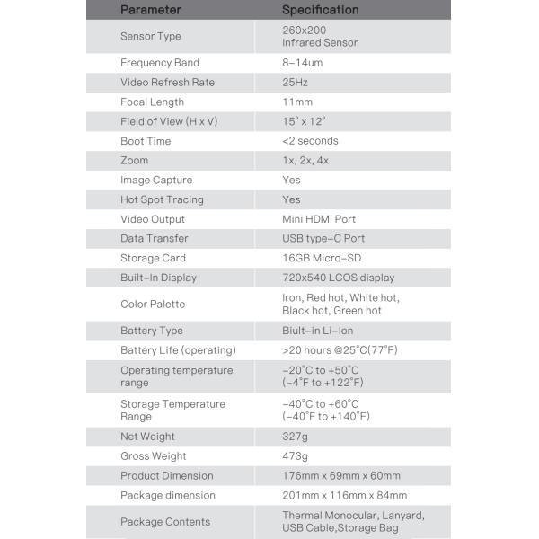 TTS260 260*200 HD Infrared Thermal Imaging Camera 20hours Standby Night Vision Monocular